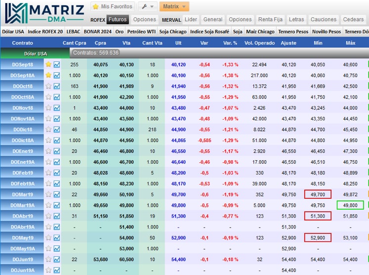 La MarketData disponible en reMarkets es la de los contratos de futuros y opciones de Matba Rofex.