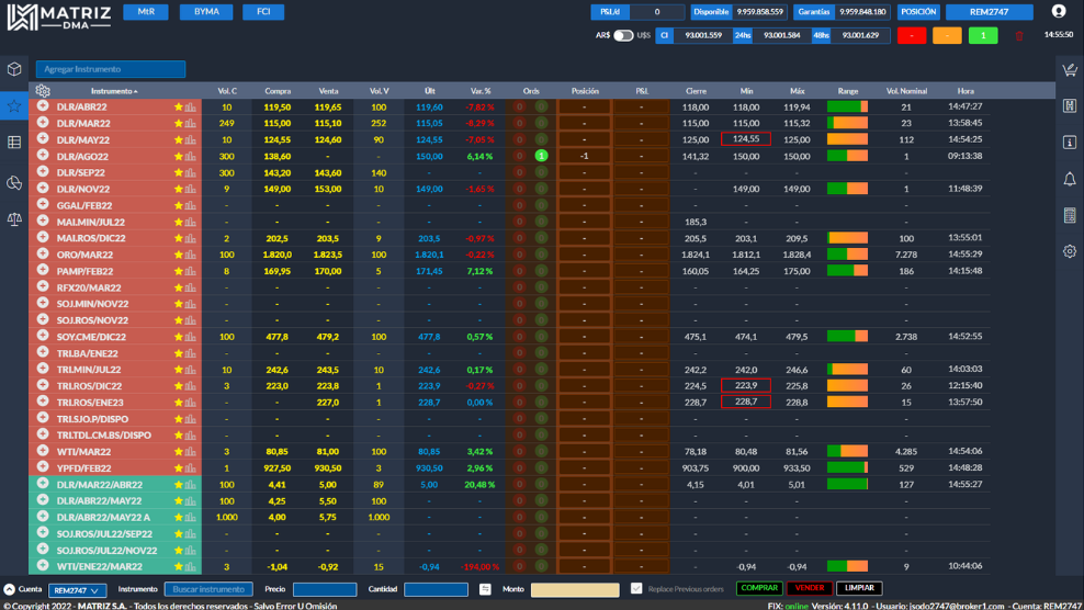 Si para tus pruebas fuera necesario contar con una posición particular, contactate con nosotros para pedir la carga de la misma a remarkets@primary.com.ar